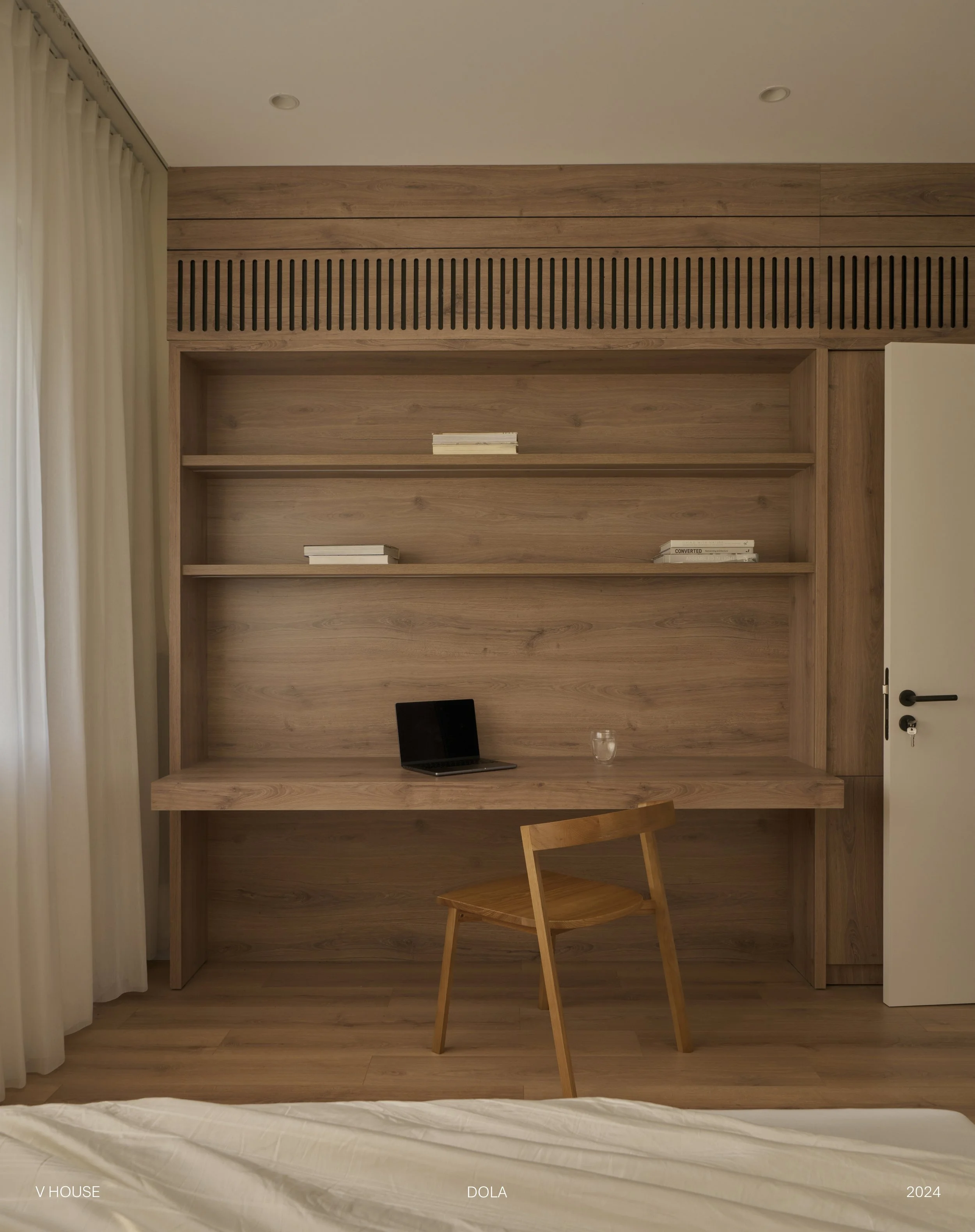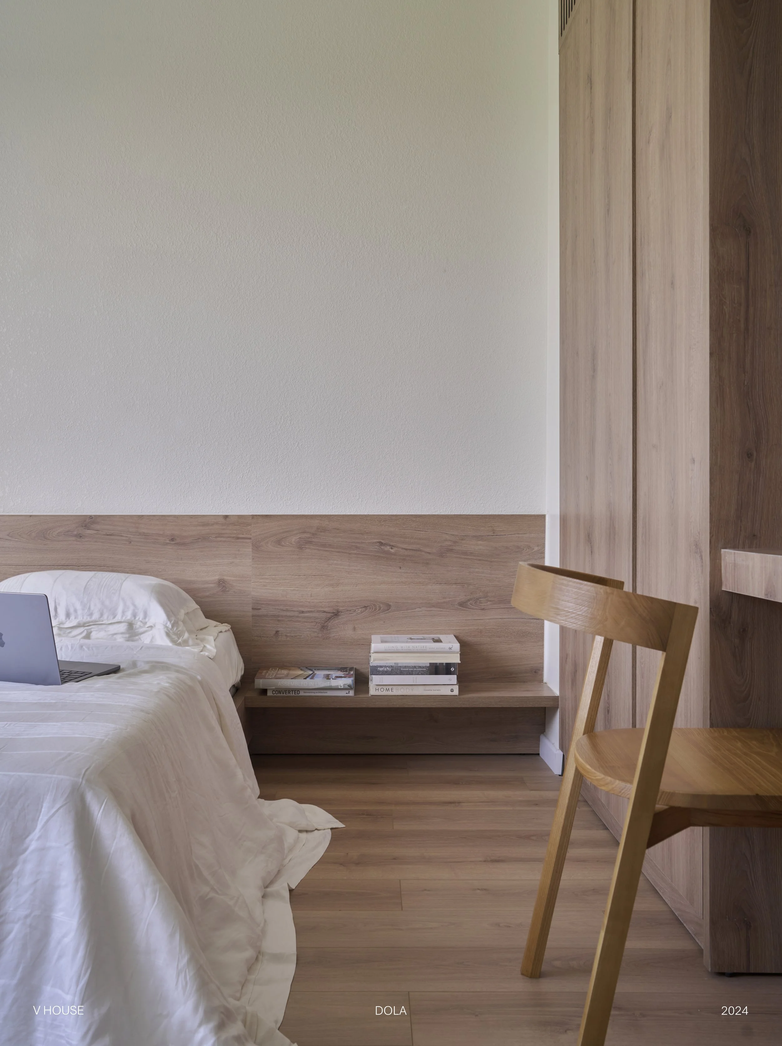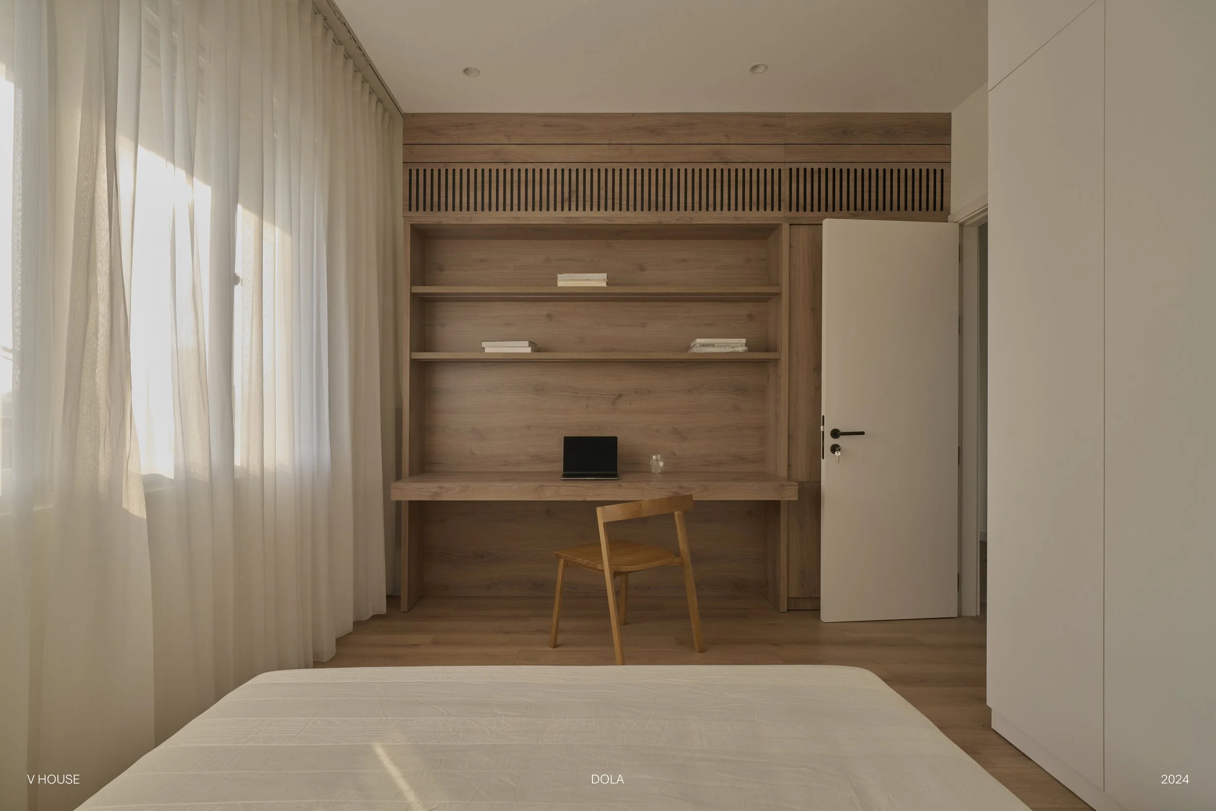 Với phòng ngủ này, chúng tôi không sử dụng quá nhiều vật liệu mà thay vào đó, chúng tôi chọn cách tối ưu ánh sáng tự nhiên và tạo mảng xanh cho không gian này để mang lại cảm giác thoải mái nhất.